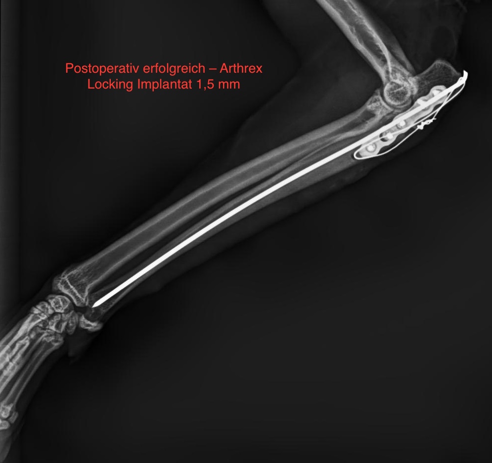 Wir verwenden Implantate der renommierten Firma Arthrex, die auch Implantate für die Humanmedizin herstellt. Hochpräzise Implantate, individuell angepasst an die Größe und Anatomie jedes Tieres.