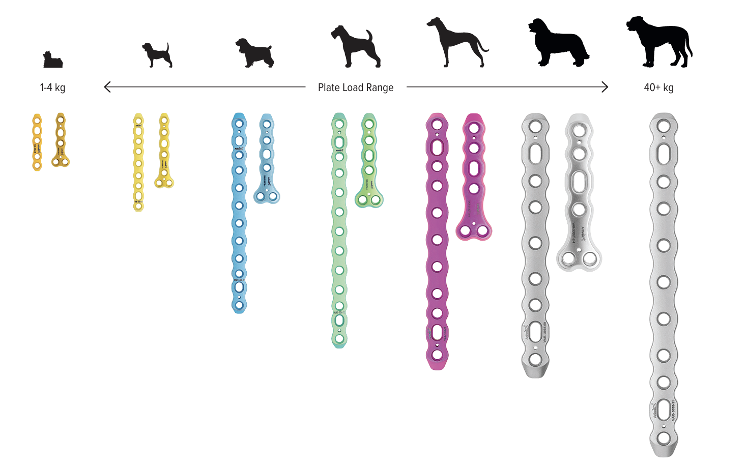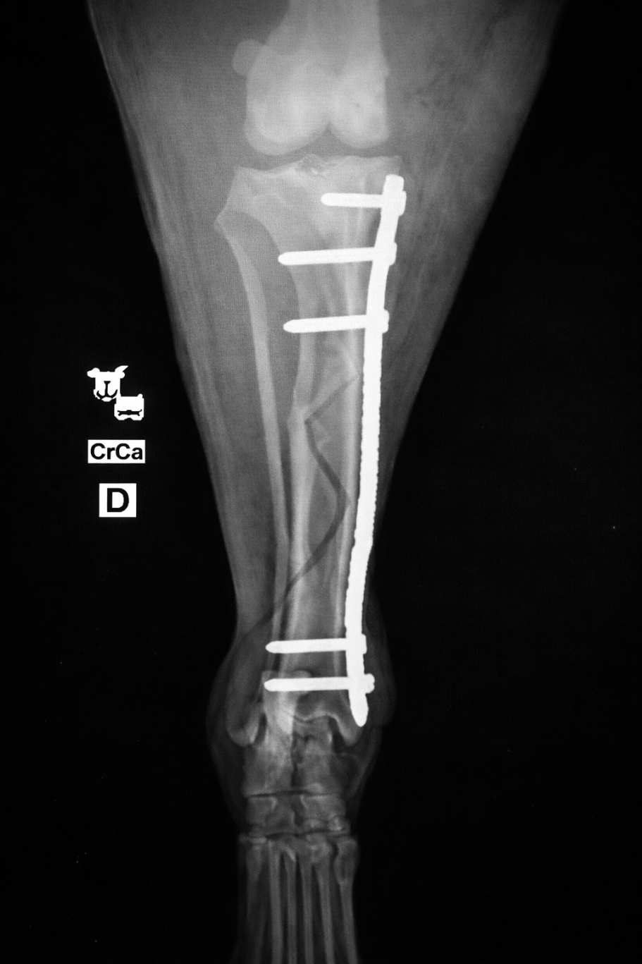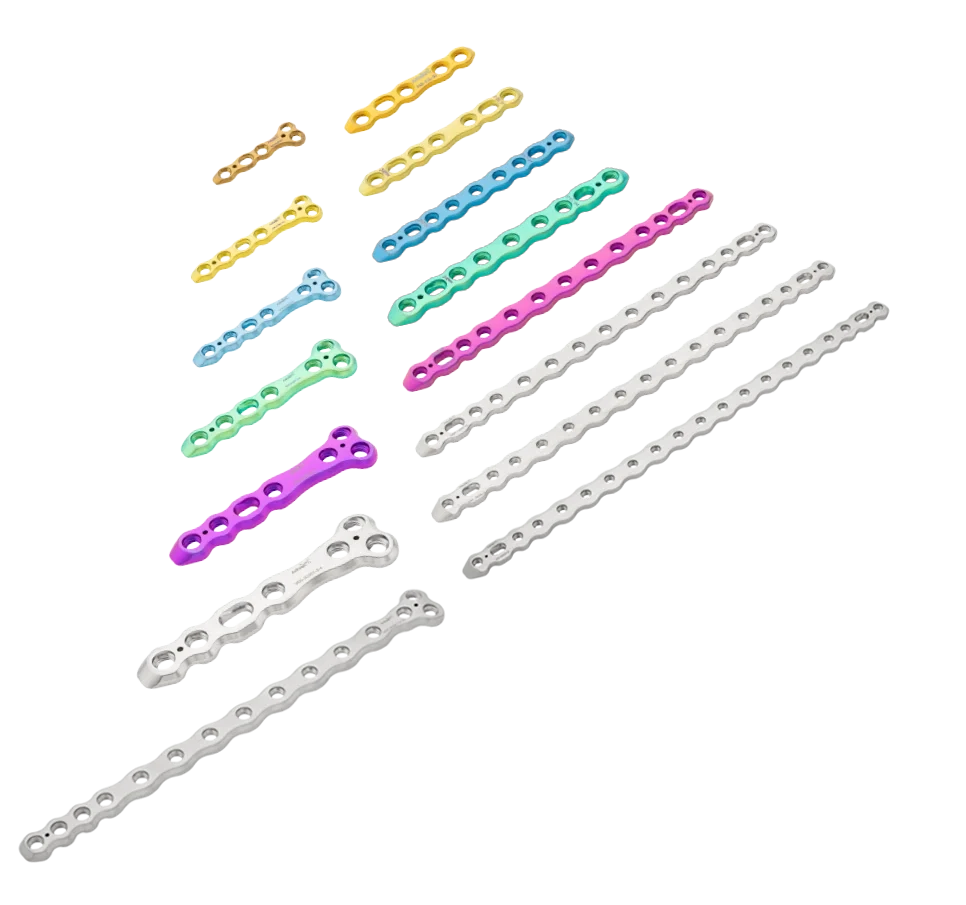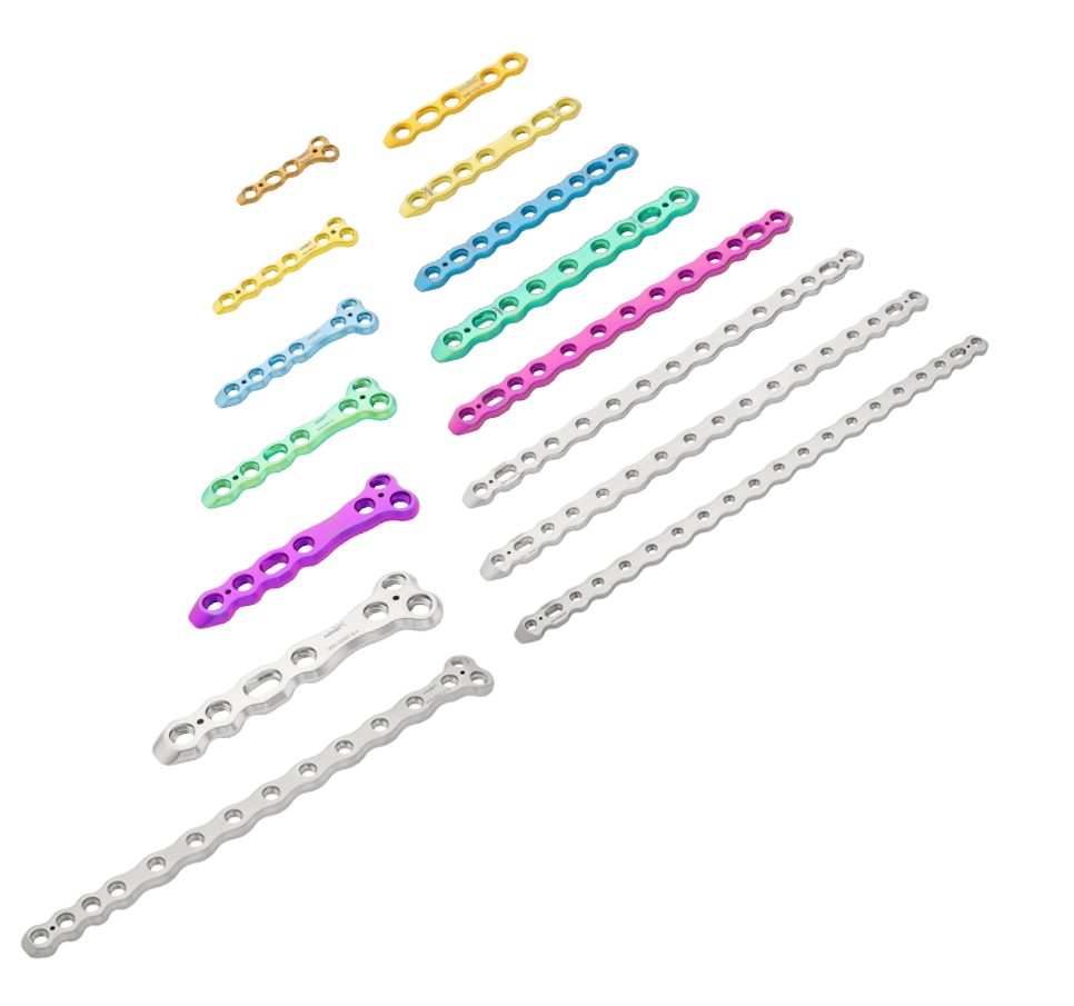 Für die Behandlung von Knochenbrüchen verwenden wir moderne Implantate von höchster Qualität. Sie bieten eine sehr gute Stabilität und unterstützen eine sichere Heilung. Je nach Art der Fraktur kommen Implantate aus Titan oder hochwertigem chirurgischem Edelstahl zum Einsatz. Die Implantate sind in passenden Größen verfügbar und genau auf den Knochen und die Anatomie Ihres Tieres abgestimmt.